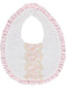 Babete pérola com folho rosa a toda a volta e detalhes em renda.