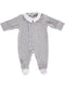 Babygrow marinho com duas golas brancas, detalhes a branco para contraste.