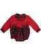 Body rosa com tecido exclusivo ilustrado com uma barra com motivos de ursos e flores, gola redonda branca.