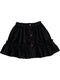 Saia de tule preto com pequenas estrelas, camada inferior lilás, elástico na cintura com brilhantes.