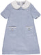 Vestido chanel preto com bolsos decorados com folho e botões, gola peter-pan com detalhes de brilhantes aplicados