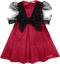 Vestido xadrez rosa com laço rosa no peito e detalhe de renda na gola.