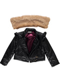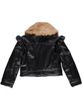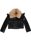 Casaco de napa preto com pelo removível.