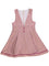 Saia de corpo xadrez rosa com botões decorativos e detalhes em fita de veludo fuxia.