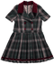 Vestido cinzento com macho no centro. Laço no peito, gola e mangas tigradas.
