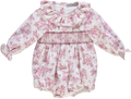 Body de menina rosa florido com smocks e folhos.