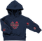 Sweat cinza com capuz. Estampado na frente, com barra traseira trabalhada aos folhos em tecido xadrez.