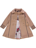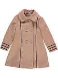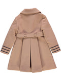 Casaco de fazenda beje com pregas nas costas e presilhas a trás.