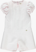Macacão rosa claro, tão fofo quanto pode ser, com um bordado encantador na frente. Aperta atrás com fecho e é perfeito para adicionar um toque de doçura ao visual.