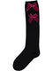 Meias beringela com laço aveludado e detalhes de brilhantes no centro.