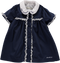 Vestido azul com laço de veludo e gola bordada