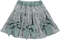 Saia cinza plissada com cós largo que aperta nas laterais com botões forrados do mesmo tecido. Toda forrada, com aplicação de laços com brilhante frente.