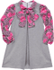 Vestido marinho, mangas balão com laços e gola brilhantes aplicados.