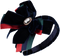 Bandolete em fita de cetim preta com laço de veludo bordeaux decorado com penas e um lindo broche redondo com brilhantes.