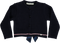 Casaco de malha azul marinho com lacinhos de veludo nas costas