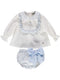 Conjunto de menina com barra ursos na gola e tapa-fralda/ saia estampado
