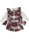 Conjunto de menina composto por macacão saia xadrez vermelho e camisa