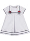 Vestido Branco e azul De Festa Com Renda Bordada E Cinto contrastante