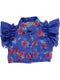 Blusa amarela com padrão floral. Detalhe de folhos nas mangas.