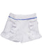 Calção elegante e divertido, cor branco com cinto branco com corações azul marinho.