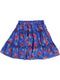 Saia rosa com pregas macho e padrão floral. Cinto rosa com laço.