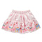 Saia verde com padrão floral nas cores rosa, azul e verde. Rodada e fluida, é feita em camadas que se separam por pequenos folhos delicados. Toda forrada em algodão, tem cintura elástica que ajuda no vestir da menina.