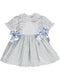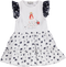Vestido com corações vermelhos, detalhe na manga e laço nas costas