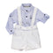 Conjunto de menino azul com camisa às riscas e calção marinho