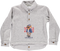 Conjunto de menino com calções cinza e camisa.