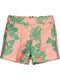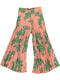 Calça pantalona plissada, em crepe com sublimação rosa contrastante com tons de laranja.