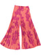 Calça pantalona plissada, em crepe com sublimação verde contrastante com tons de salmão.