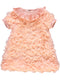 Gorro rosa para menina com folho e detalhe de pequena flor.