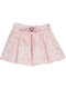 Saia com tecido rosa contrastante com cor-de-laranja. Camada inferior de tule para dar mais volume.