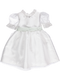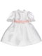 Vestido Branco e azul De Festa Com Renda Bordada E Cinto contrastante
