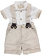 Vestido de menina, em tecido bordado na cor branca. Gola em tecido bordado rosa e corpete com nervuras em tecido branco. Grande laço rosa aplicado atrás.