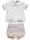 Vestido de forro rosa com renda branca, golas, carcela e manga balão.