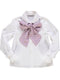 Blusa branca com bordado de tulipa na gola e botões rosa.