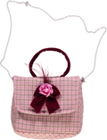 Bolsa xadrez rosa com detalhe de laço e detalhe de alça em veludo