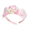 Bandolete com rosas em tons rosa forte e flores verdes e brancas.