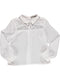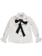 Blusa branca com renda preta no centro e punhos, botões pretos.