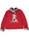 Camisola rosa com folhos nas mangas e estampado no centro.