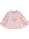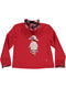 Camisola vermelha com estampado no centro, golas e punhos em tecido tartan bege.