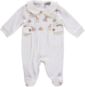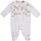 Babygrow branco com padrão de gazelas, gola peter-pan e presilhas decorativas com botões.
