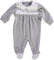 Babygrow de menino cinzento e branco com gola peter-pan e detalhes bordados.