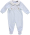 Babygrow de menino branco com detalhes em xadrez verde e gola peter-pan branca.