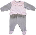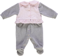 Babygrow de menina rosa e cinzento com gola e folhos.