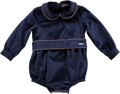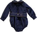 Body de menino marinho de veludo com gola e cinto.