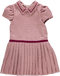 Vestido de bebé vermelho florido com smocks e gola peter-pan branca.