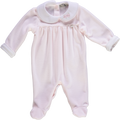 Babygrow de menina rosa com golas bordadas com duas flores.