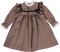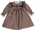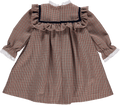Vestido de bebé em xadrez com folhos no peito e renda nas mangas e decote.